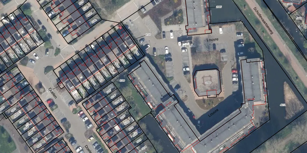 Het perceel waarop Louvre 70 staat heeft een oppervlakte van 2337 m². Dit is een zeer groot perceel. De perceeloppervlakte wordt geregistreerd door het Kadaster. Gedetailleerde informatie over de maten van dit perceel kunt u vinden in het rapport Kadastrale kaart met maatvoering van Louvre 70.