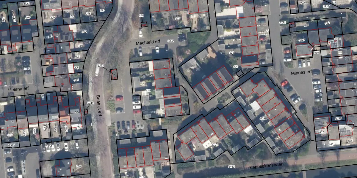 Het perceel waarop Machteld erf 22 staat heeft een oppervlakte van 834 m². Dit is een groot perceel. De perceeloppervlakte wordt geregistreerd door het Kadaster. Gedetailleerde informatie over de maten van dit perceel kunt u vinden in het rapport Kadastrale kaart met maatvoering van Machteld erf 22.