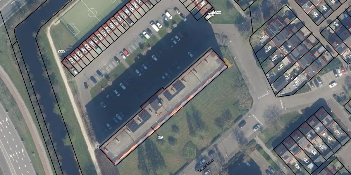 Het perceel waarop Merelhoven 113 staat heeft een oppervlakte van 1247 m². Dit is een zeer groot perceel. De perceeloppervlakte wordt geregistreerd door het Kadaster. Gedetailleerde informatie over de maten van dit perceel kunt u vinden in het rapport Kadastrale kaart met maatvoering van Merelhoven 113.