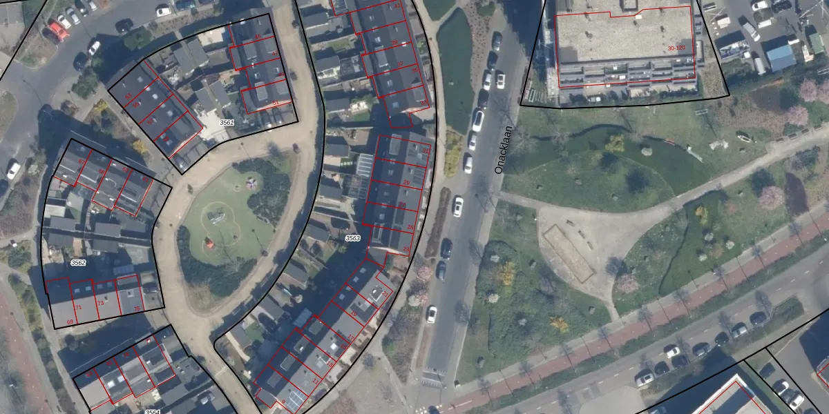 Het perceel waarop Onacklaan 27 staat heeft een oppervlakte van 2996 m². Dit is een zeer groot perceel. De perceeloppervlakte wordt geregistreerd door het Kadaster. Gedetailleerde informatie over de maten van dit perceel kunt u vinden in het rapport Kadastrale kaart met maatvoering van Onacklaan 27.