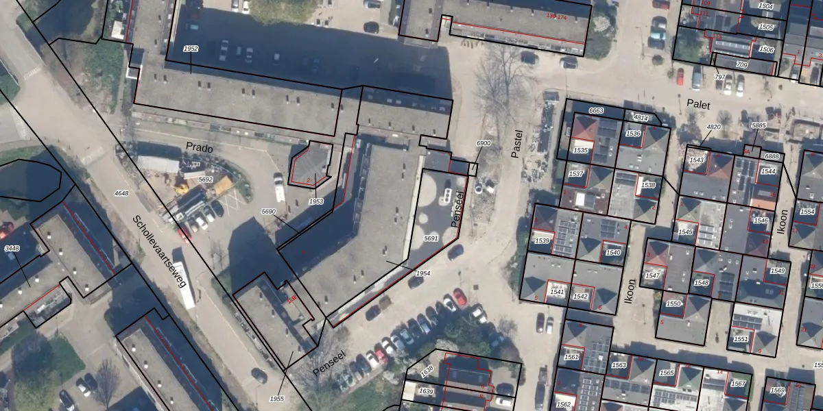 Het perceel waarop Penseel 8 staat heeft een oppervlakte van 1175 m². Dit is een zeer groot perceel. De perceeloppervlakte wordt geregistreerd door het Kadaster. Gedetailleerde informatie over de maten van dit perceel kunt u vinden in het rapport Kadastrale kaart met maatvoering van Penseel 8.