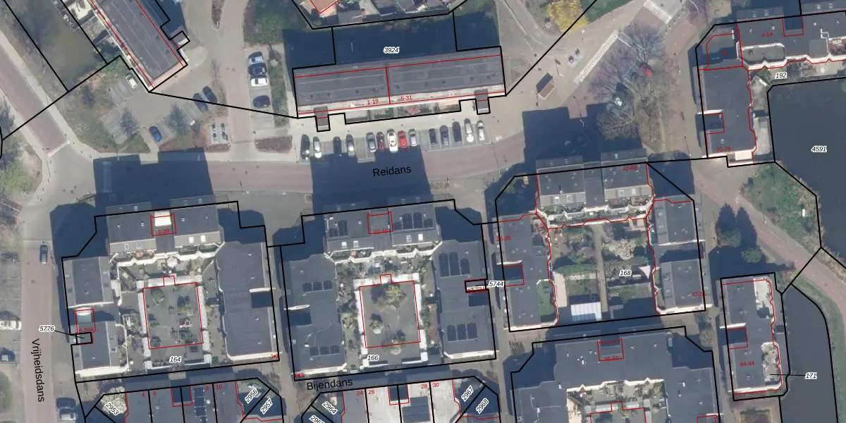 Het perceel waarop Reidans 40 staat heeft een oppervlakte van 1762 m². Dit is een zeer groot perceel. De perceeloppervlakte wordt geregistreerd door het Kadaster. Gedetailleerde informatie over de maten van dit perceel kunt u vinden in het rapport Kadastrale kaart met maatvoering van Reidans 40.