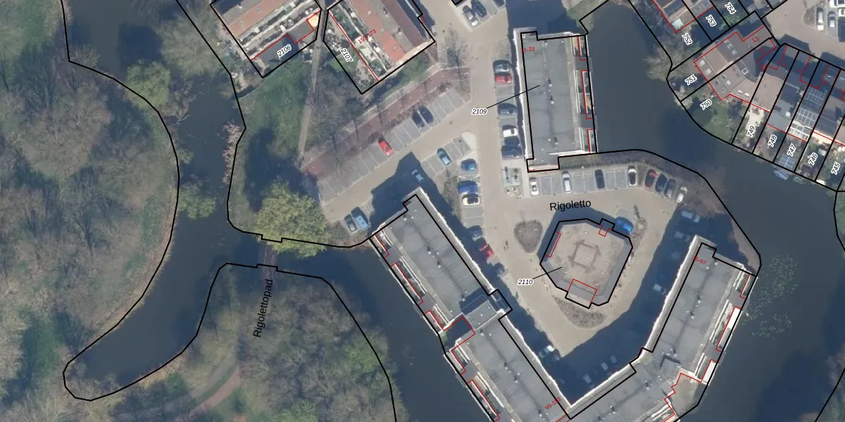 Het perceel waarop Rigoletto 113 staat heeft een oppervlakte van 2048 m². Dit is een zeer groot perceel. De perceeloppervlakte wordt geregistreerd door het Kadaster. Gedetailleerde informatie over de maten van dit perceel kunt u vinden in het rapport Kadastrale kaart met maatvoering van Rigoletto 113.