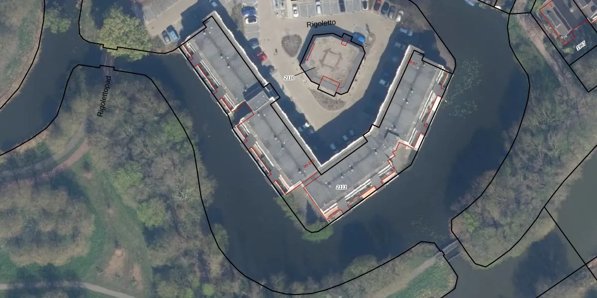 Het perceel waarop Rigoletto 117 staat heeft een oppervlakte van 2048 m². Dit is een zeer groot perceel. De perceeloppervlakte wordt geregistreerd door het Kadaster. Gedetailleerde informatie over de maten van dit perceel kunt u vinden in het rapport Kadastrale kaart met maatvoering van Rigoletto 117.