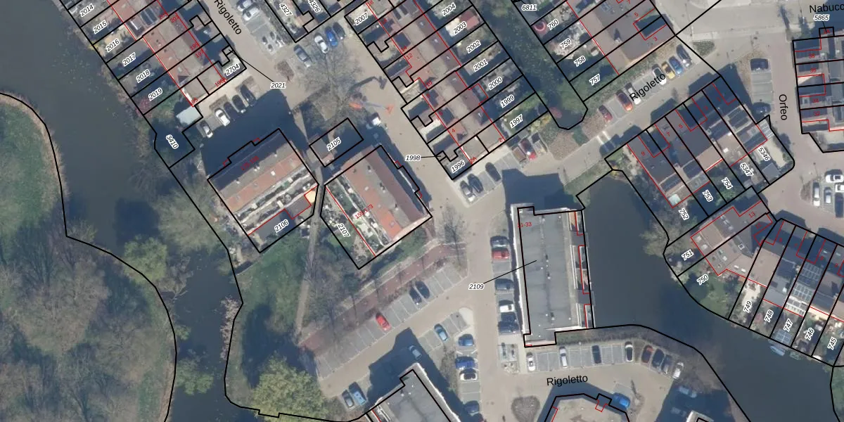 Het perceel waarop Rigoletto 155 staat heeft een oppervlakte van 440 m². Dit is een groot perceel. De perceeloppervlakte wordt geregistreerd door het Kadaster. Gedetailleerde informatie over de maten van dit perceel kunt u vinden in het rapport Kadastrale kaart met maatvoering van Rigoletto 155.