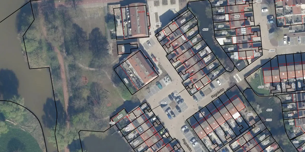 Het perceel waarop Rigoletto 217 staat heeft een oppervlakte van 454 m². Dit is een groot perceel. De perceeloppervlakte wordt geregistreerd door het Kadaster. Gedetailleerde informatie over de maten van dit perceel kunt u vinden in het rapport Kadastrale kaart met maatvoering van Rigoletto 217.