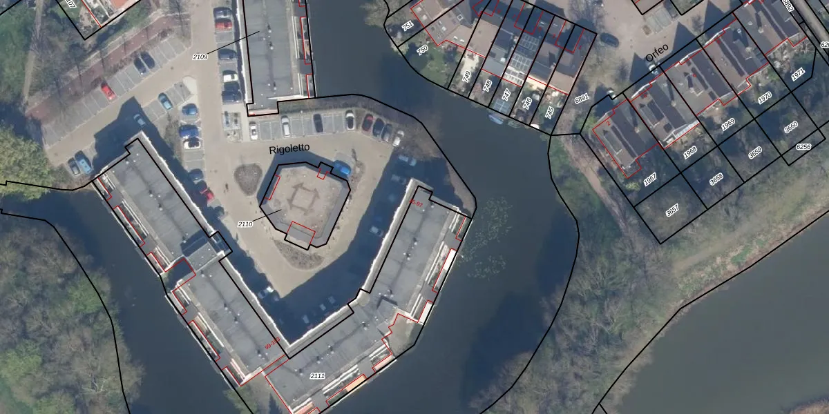 Het perceel waarop Rigoletto 67 staat heeft een oppervlakte van 2048 m². Dit is een zeer groot perceel. De perceeloppervlakte wordt geregistreerd door het Kadaster. Gedetailleerde informatie over de maten van dit perceel kunt u vinden in het rapport Kadastrale kaart met maatvoering van Rigoletto 67.