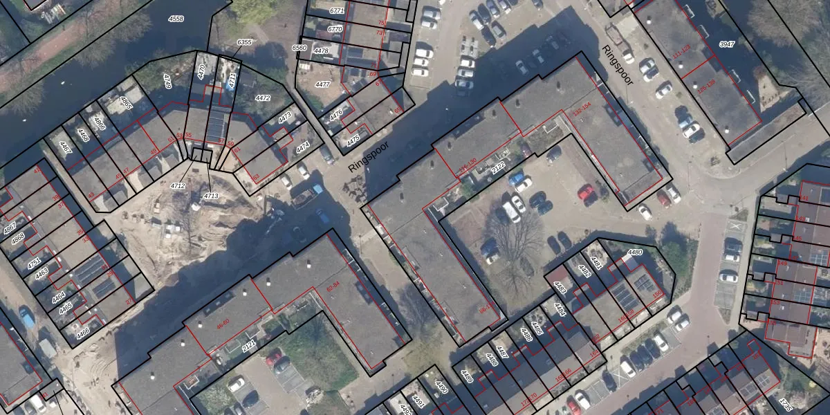 Het perceel waarop Ringspoor 108 staat heeft een oppervlakte van 1685 m². Dit is een zeer groot perceel. De perceeloppervlakte wordt geregistreerd door het Kadaster. Gedetailleerde informatie over de maten van dit perceel kunt u vinden in het rapport Kadastrale kaart met maatvoering van Ringspoor 108.