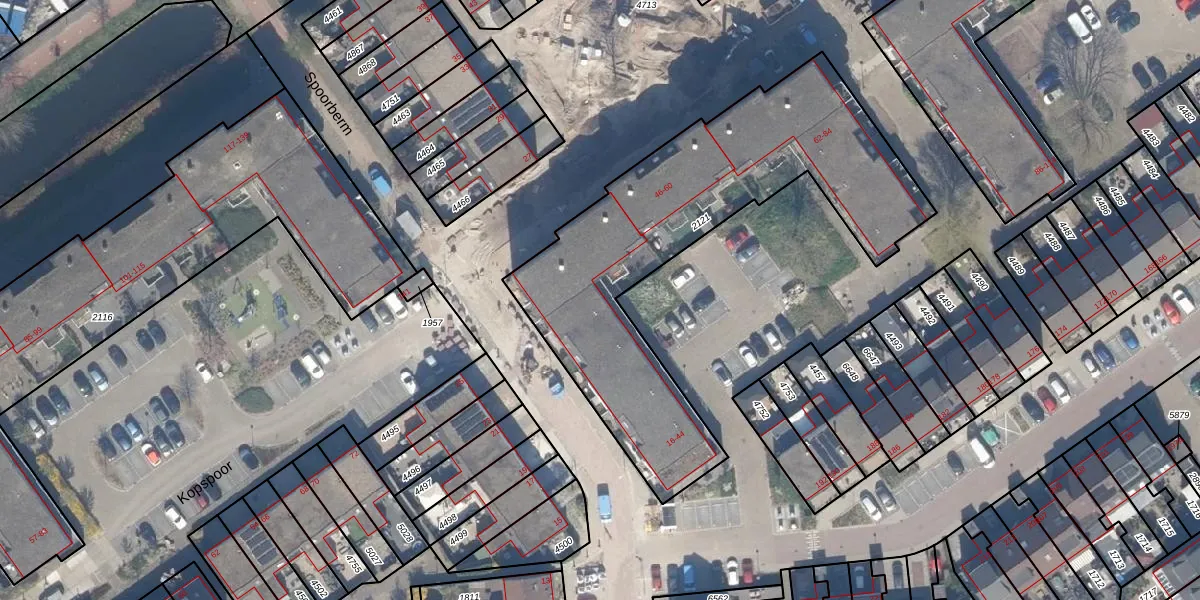 Het perceel waarop Ringspoor 32 staat heeft een oppervlakte van 1685 m². Dit is een zeer groot perceel. De perceeloppervlakte wordt geregistreerd door het Kadaster. Gedetailleerde informatie over de maten van dit perceel kunt u vinden in het rapport Kadastrale kaart met maatvoering van Ringspoor 32.
