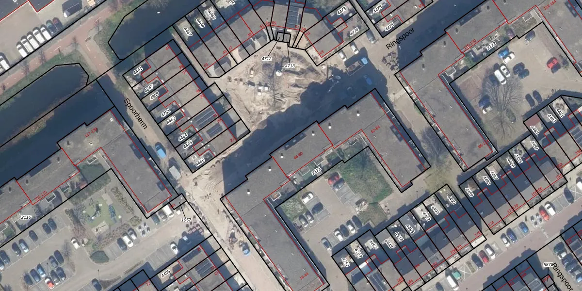 Het perceel waarop Ringspoor 50 staat heeft een oppervlakte van 1685 m². Dit is een zeer groot perceel. De perceeloppervlakte wordt geregistreerd door het Kadaster. Gedetailleerde informatie over de maten van dit perceel kunt u vinden in het rapport Kadastrale kaart met maatvoering van Ringspoor 50.