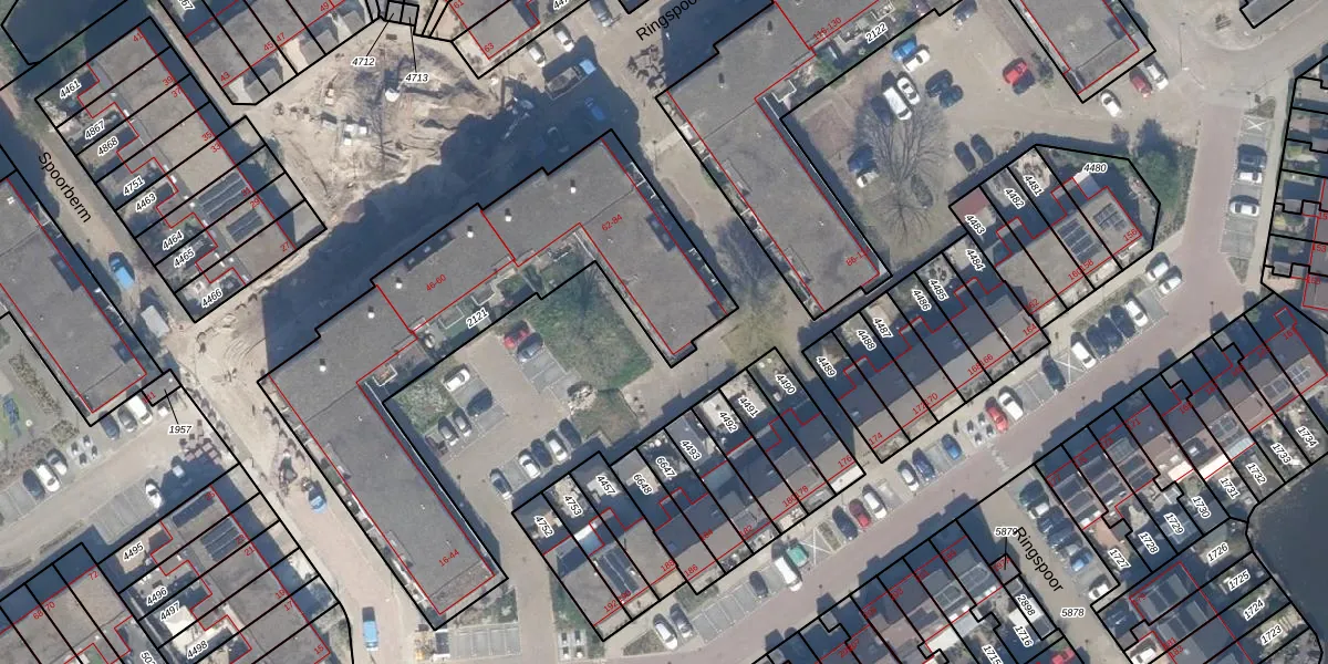 Het perceel waarop Ringspoor 76 staat heeft een oppervlakte van 1685 m². Dit is een zeer groot perceel. De perceeloppervlakte wordt geregistreerd door het Kadaster. Gedetailleerde informatie over de maten van dit perceel kunt u vinden in het rapport Kadastrale kaart met maatvoering van Ringspoor 76.