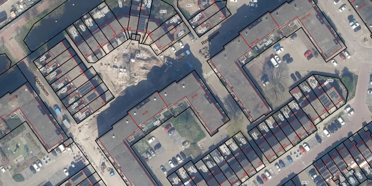 Het perceel waarop Ringspoor 84 staat heeft een oppervlakte van 1685 m². Dit is een zeer groot perceel. De perceeloppervlakte wordt geregistreerd door het Kadaster. Gedetailleerde informatie over de maten van dit perceel kunt u vinden in het rapport Kadastrale kaart met maatvoering van Ringspoor 84.