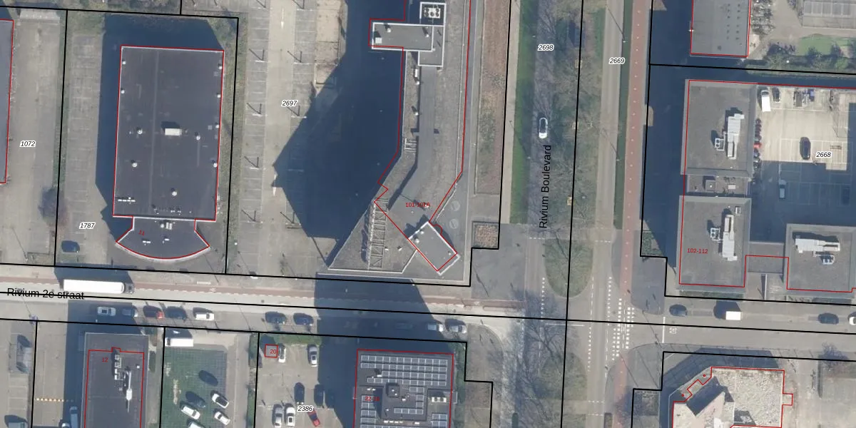 Het perceel waarop Rivium Boulevard 101 staat heeft een oppervlakte van 5175 m². Dit is een zeer groot perceel. De perceeloppervlakte wordt geregistreerd door het Kadaster. Gedetailleerde informatie over de maten van dit perceel kunt u vinden in het rapport Kadastrale kaart met maatvoering van Rivium Boulevard 101.