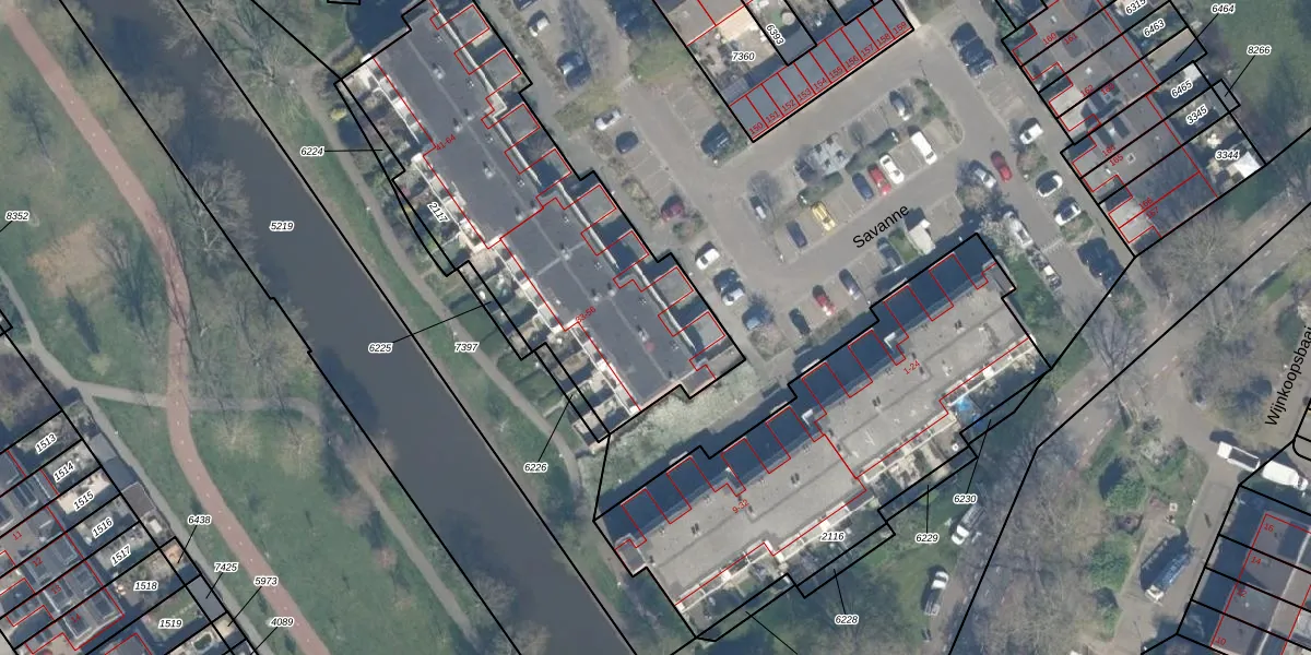 Het perceel waarop Savanne 35 staat heeft een oppervlakte van 1660 m². Dit is een zeer groot perceel. De perceeloppervlakte wordt geregistreerd door het Kadaster. Gedetailleerde informatie over de maten van dit perceel kunt u vinden in het rapport Kadastrale kaart met maatvoering van Savanne 35.