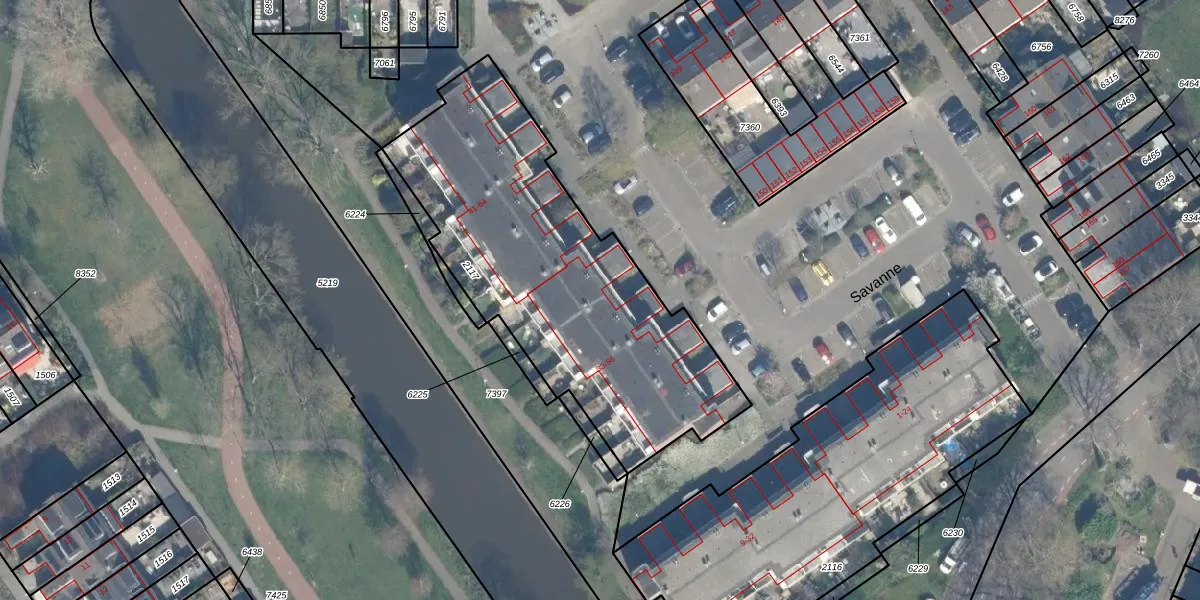 Het perceel waarop Savanne 39 staat heeft een oppervlakte van 1660 m². Dit is een zeer groot perceel. De perceeloppervlakte wordt geregistreerd door het Kadaster. Gedetailleerde informatie over de maten van dit perceel kunt u vinden in het rapport Kadastrale kaart met maatvoering van Savanne 39.