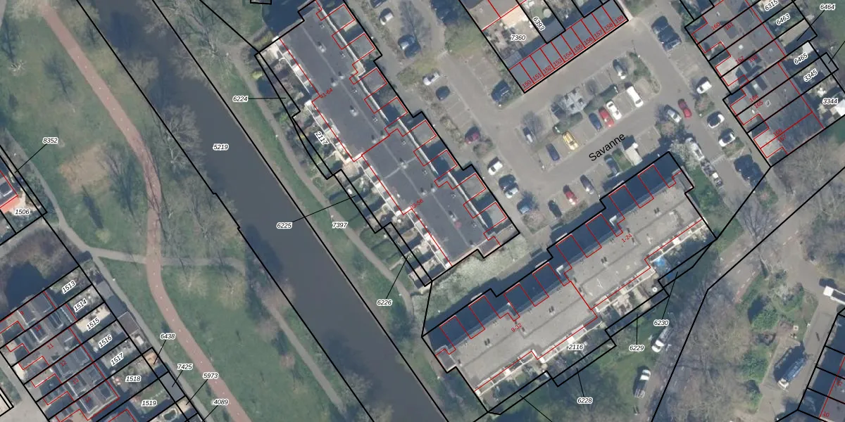 Het perceel waarop Savanne 52 staat heeft een oppervlakte van 1660 m². Dit is een zeer groot perceel. De perceeloppervlakte wordt geregistreerd door het Kadaster. Gedetailleerde informatie over de maten van dit perceel kunt u vinden in het rapport Kadastrale kaart met maatvoering van Savanne 52.