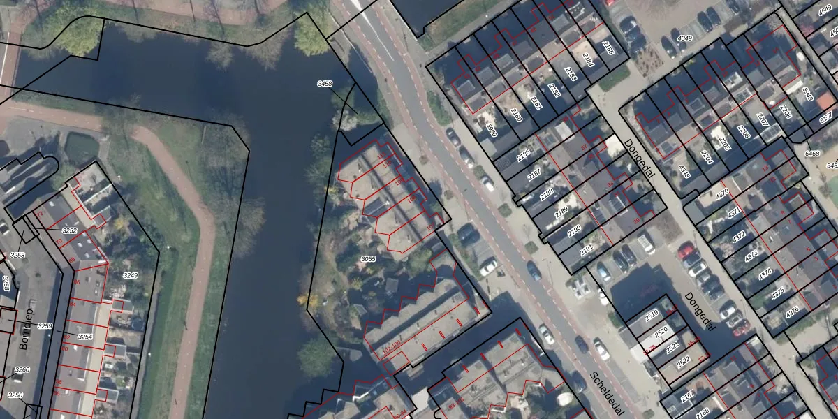 Het perceel waarop Scheldedal 108 staat heeft een oppervlakte van 4085 m². Dit is een zeer groot perceel. De perceeloppervlakte wordt geregistreerd door het Kadaster. Gedetailleerde informatie over de maten van dit perceel kunt u vinden in het rapport Kadastrale kaart met maatvoering van Scheldedal 108.