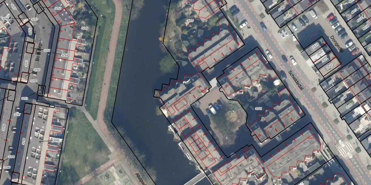 Het perceel waarop Scheldedal 90 staat heeft een oppervlakte van 4085 m². Dit is een zeer groot perceel. De perceeloppervlakte wordt geregistreerd door het Kadaster. Gedetailleerde informatie over de maten van dit perceel kunt u vinden in het rapport Kadastrale kaart met maatvoering van Scheldedal 90.