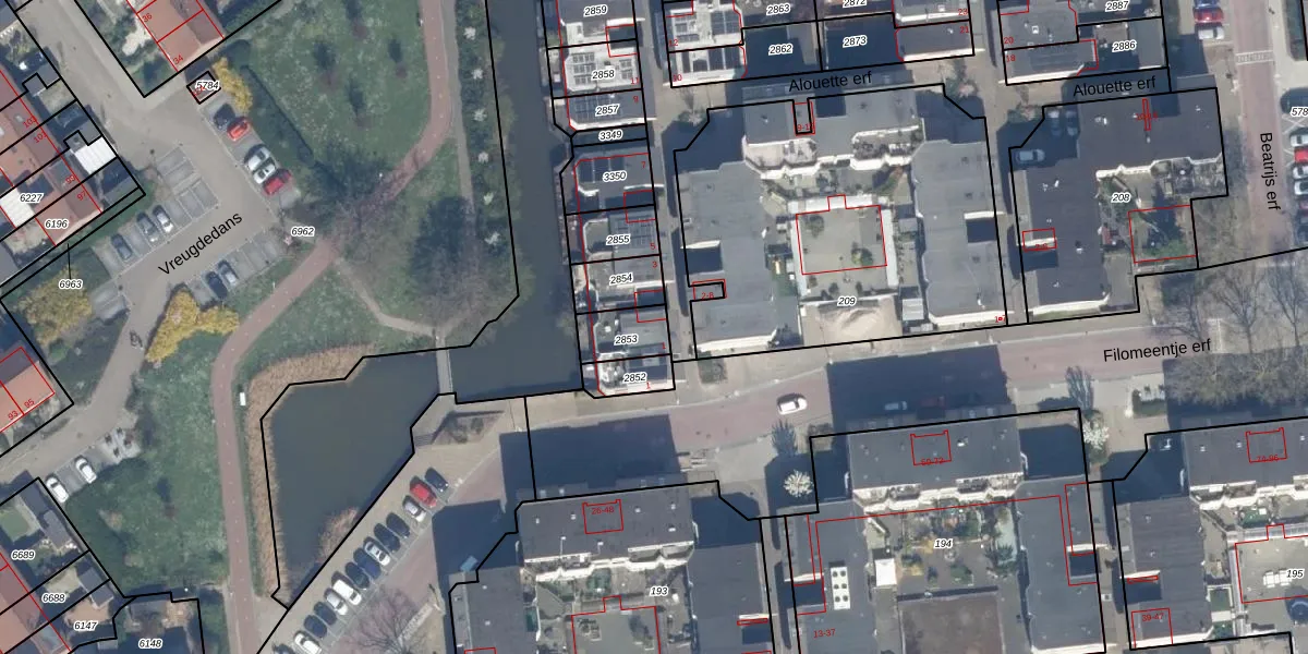 Gebruik de zoekbalk of klik op een perceel voor informatie over de adressen binnen dit perceel.