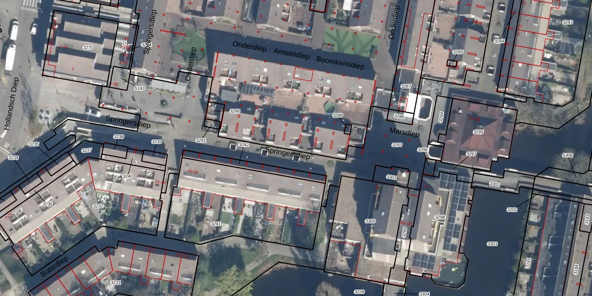 Het perceel waarop Springersdiep 21 staat heeft een oppervlakte van 8588 m². Dit is een zeer groot perceel. De perceeloppervlakte wordt geregistreerd door het Kadaster. Gedetailleerde informatie over de maten van dit perceel kunt u vinden in het rapport Kadastrale kaart met maatvoering van Springersdiep 21.