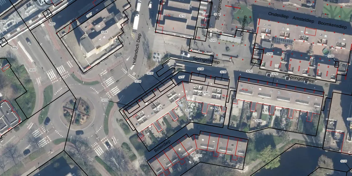 Het perceel waarop Springersdiep 24 staat heeft een oppervlakte van 1234 m². Dit is een zeer groot perceel. De perceeloppervlakte wordt geregistreerd door het Kadaster. Gedetailleerde informatie over de maten van dit perceel kunt u vinden in het rapport Kadastrale kaart met maatvoering van Springersdiep 24.