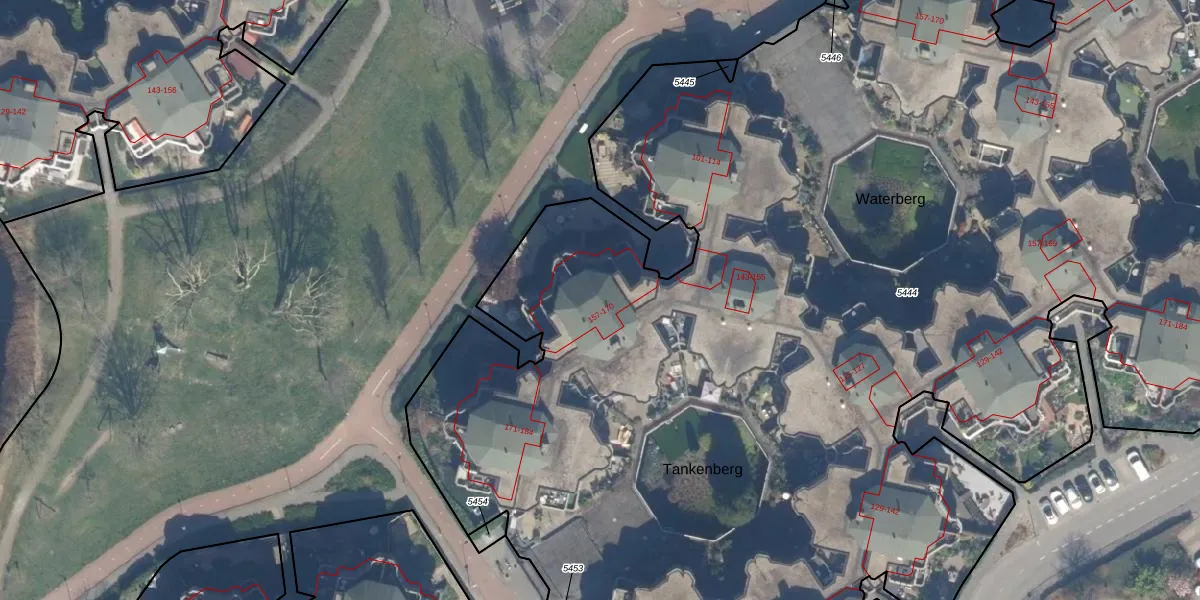 Het perceel waarop Tankenberg 161 staat heeft een oppervlakte van 1,5 ha. Dit is een zeer groot perceel. De perceeloppervlakte wordt geregistreerd door het Kadaster. Gedetailleerde informatie over de maten van dit perceel kunt u vinden in het rapport Kadastrale kaart met maatvoering van Tankenberg 161.