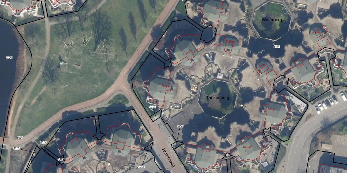 Het perceel waarop Tankenberg 182 staat heeft een oppervlakte van 1,5 ha. Dit is een zeer groot perceel. De perceeloppervlakte wordt geregistreerd door het Kadaster. Gedetailleerde informatie over de maten van dit perceel kunt u vinden in het rapport Kadastrale kaart met maatvoering van Tankenberg 182.