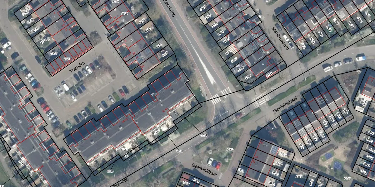 Het perceel waarop Toendra 47 staat heeft een oppervlakte van 1654 m². Dit is een zeer groot perceel. De perceeloppervlakte wordt geregistreerd door het Kadaster. Gedetailleerde informatie over de maten van dit perceel kunt u vinden in het rapport Kadastrale kaart met maatvoering van Toendra 47.