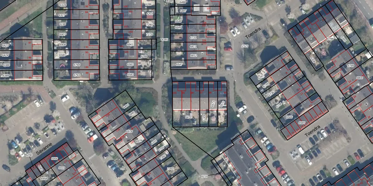Het perceel waarop Toendra 99 staat heeft een oppervlakte van 358 m². Dit is een groot perceel. De perceeloppervlakte wordt geregistreerd door het Kadaster. Gedetailleerde informatie over de maten van dit perceel kunt u vinden in het rapport Kadastrale kaart met maatvoering van Toendra 99.