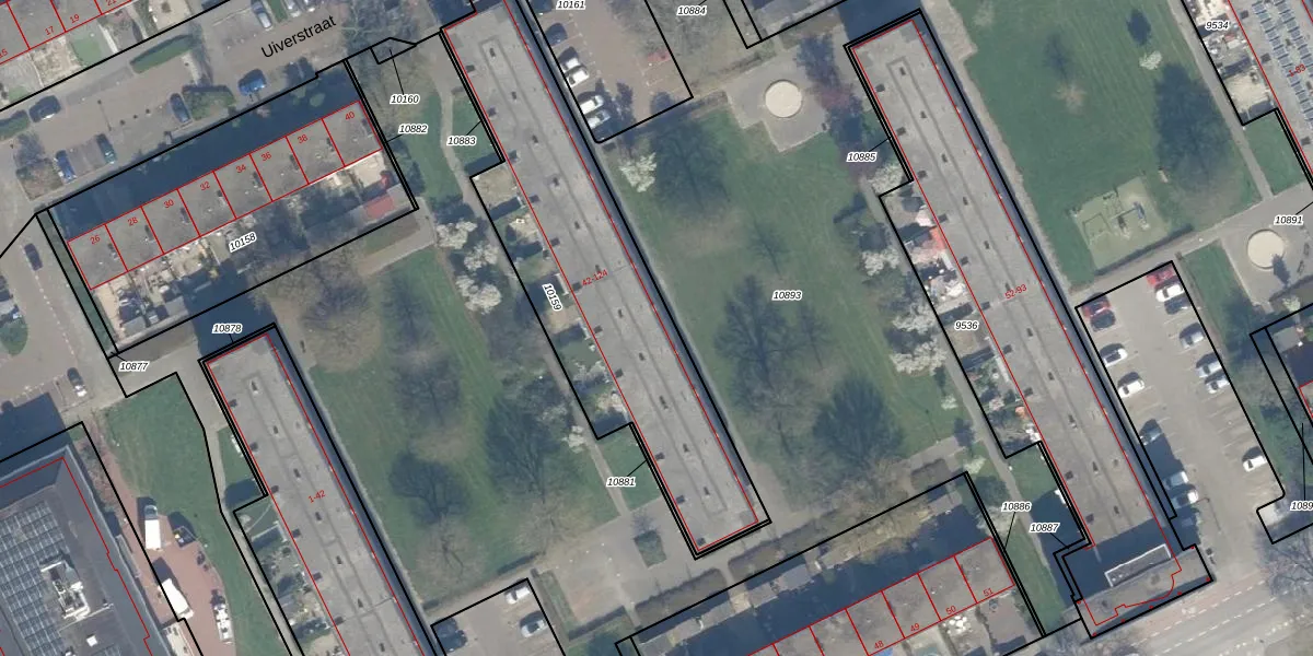 Uiverstraat 44 is gelegen op kadastraal perceel CPL01B10159. Deze kadastrale aanduiding is uniek en wordt gebruikt door het Kadaster om eigendomsrechten en andere zakelijke rechten vast te leggen. Het perceel maakt onderdeel uit van de kadastrale gemeente Capelle aan den IJssel.