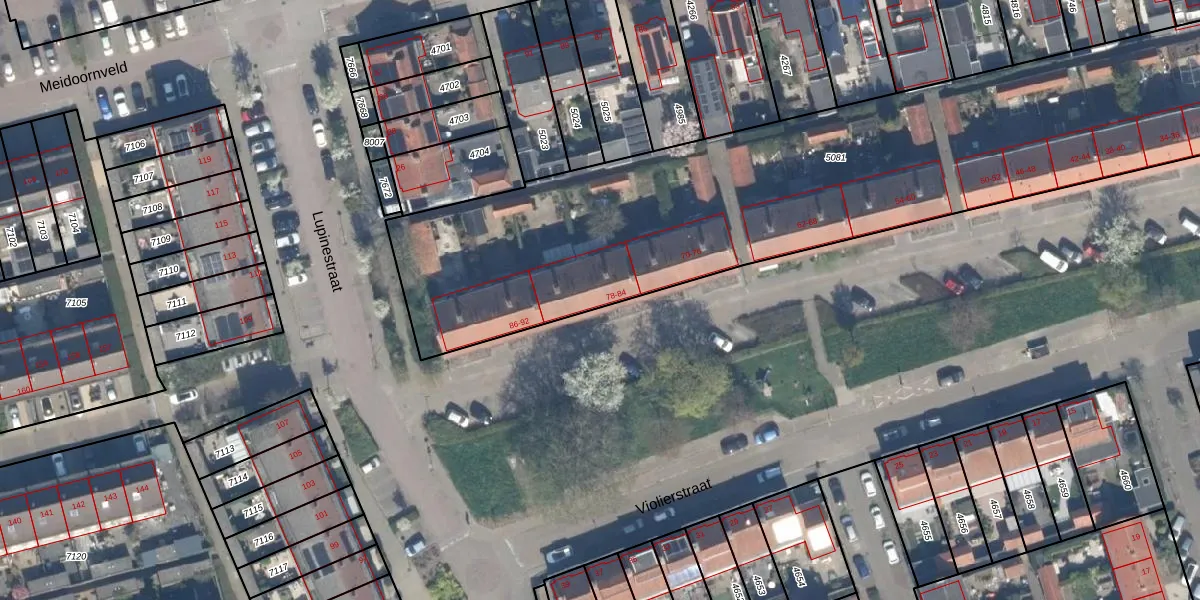 Het perceel waarop Violierstraat 82 staat heeft een oppervlakte van 3171 m². Dit is een zeer groot perceel. De perceeloppervlakte wordt geregistreerd door het Kadaster. Gedetailleerde informatie over de maten van dit perceel kunt u vinden in het rapport Kadastrale kaart met maatvoering van Violierstraat 82.