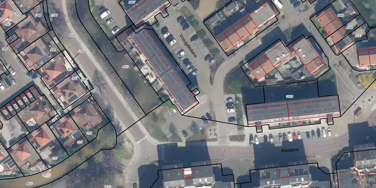 Het perceel waarop Vreugdedans 23 staat heeft een oppervlakte van 875 m². Dit is een groot perceel. De perceeloppervlakte wordt geregistreerd door het Kadaster. Gedetailleerde informatie over de maten van dit perceel kunt u vinden in het rapport Kadastrale kaart met maatvoering van Vreugdedans 23.