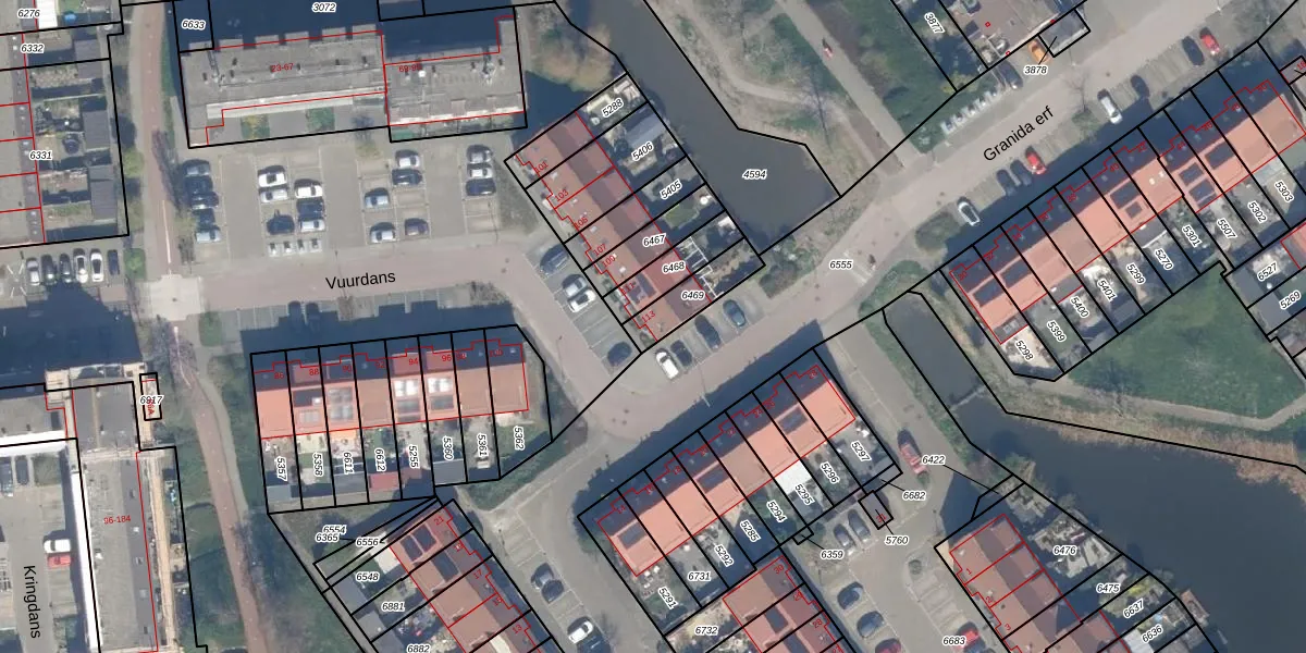 Gebruik de zoekbalk of klik op een perceel voor informatie over de adressen binnen dit perceel.