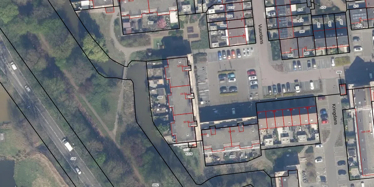 Het perceel waarop Vuurdans 24 staat heeft een oppervlakte van 970 m². Dit is een groot perceel. De perceeloppervlakte wordt geregistreerd door het Kadaster. Gedetailleerde informatie over de maten van dit perceel kunt u vinden in het rapport Kadastrale kaart met maatvoering van Vuurdans 24.