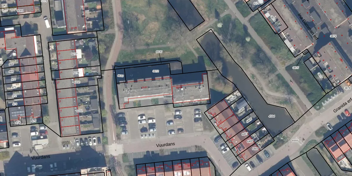 Het perceel waarop Vuurdans 85 staat heeft een oppervlakte van 1051 m². Dit is een zeer groot perceel. De perceeloppervlakte wordt geregistreerd door het Kadaster. Gedetailleerde informatie over de maten van dit perceel kunt u vinden in het rapport Kadastrale kaart met maatvoering van Vuurdans 85.