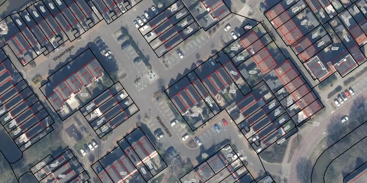 Het perceel waarop Waaierdans 16 staat heeft een oppervlakte van 395 m². Dit is een groot perceel. De perceeloppervlakte wordt geregistreerd door het Kadaster. Gedetailleerde informatie over de maten van dit perceel kunt u vinden in het rapport Kadastrale kaart met maatvoering van Waaierdans 16.
