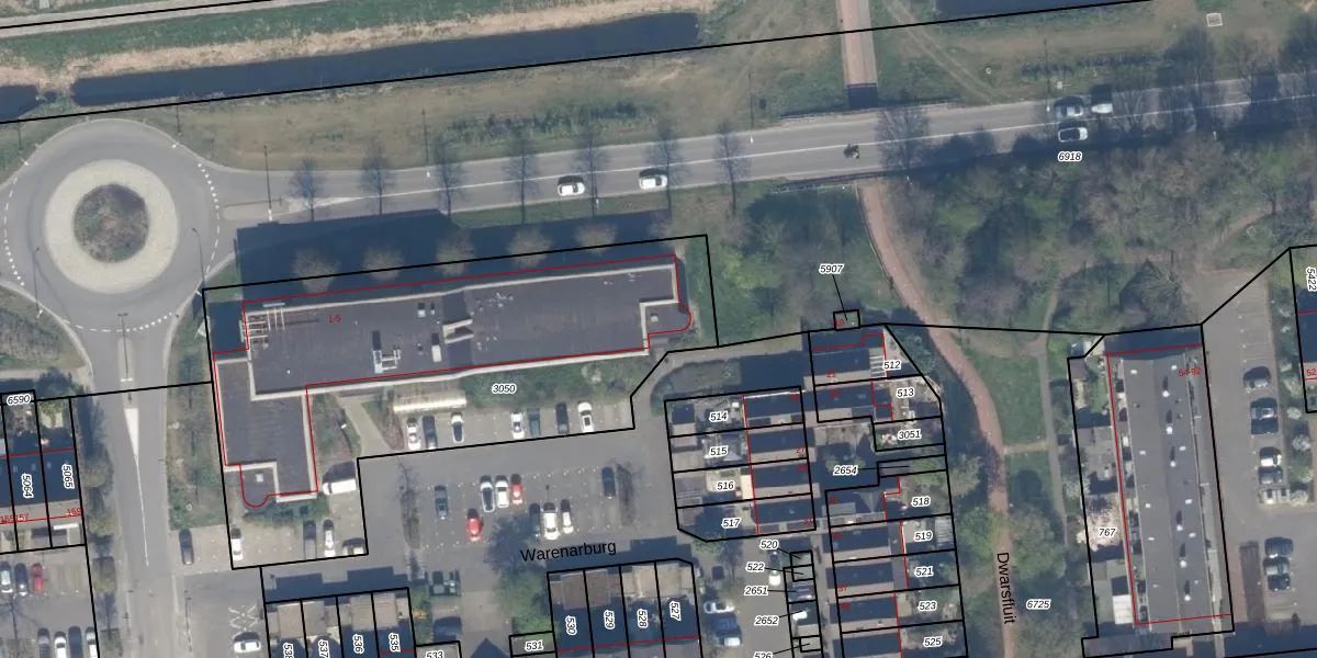 Het perceel waarop Warenarburg 5 staat heeft een oppervlakte van 2327 m². Dit is een zeer groot perceel. De perceeloppervlakte wordt geregistreerd door het Kadaster. Gedetailleerde informatie over de maten van dit perceel kunt u vinden in het rapport Kadastrale kaart met maatvoering van Warenarburg 5.
