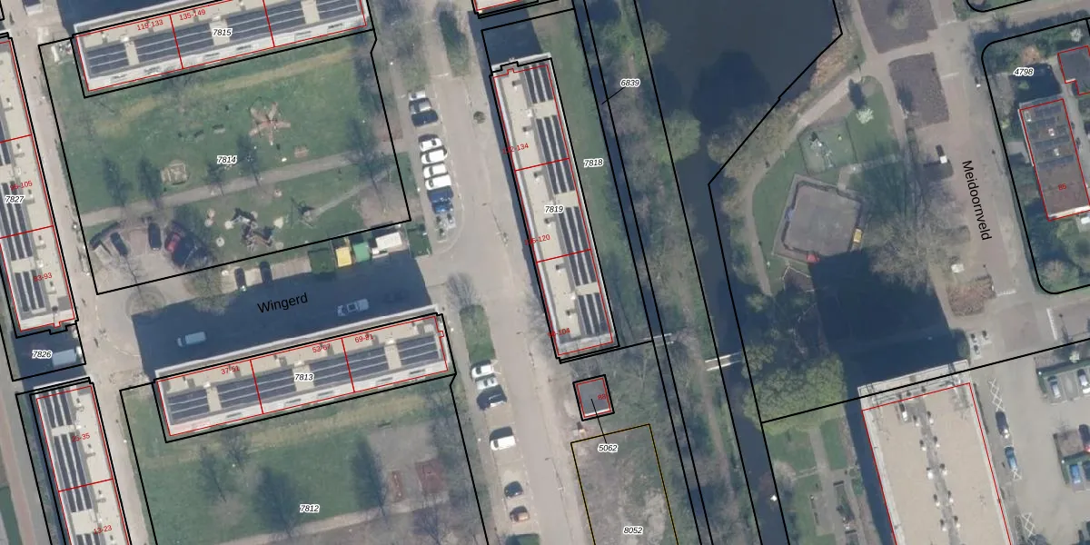 Het perceel waarop Wingerd 104 staat heeft een oppervlakte van 640 m². Dit is een groot perceel. De perceeloppervlakte wordt geregistreerd door het Kadaster. Gedetailleerde informatie over de maten van dit perceel kunt u vinden in het rapport Kadastrale kaart met maatvoering van Wingerd 104.