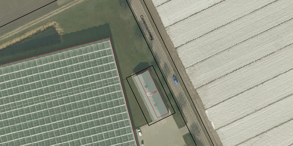 Het perceel waarop Castenrayseweg 28-M staat heeft een oppervlakte van 718 m². Dit is een groot perceel. De perceeloppervlakte wordt geregistreerd door het Kadaster. Gedetailleerde informatie over de maten van dit perceel kunt u vinden in het rapport Kadastrale kaart met maatvoering van Castenrayseweg 28-M.