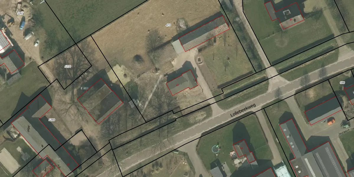 Het perceel waarop Lollebeekweg 43 staat heeft een oppervlakte van 4510 m². Dit is een zeer groot perceel. De perceeloppervlakte wordt geregistreerd door het Kadaster. Gedetailleerde informatie over de maten van dit perceel kunt u vinden in het rapport Kadastrale kaart met maatvoering van Lollebeekweg 43.
