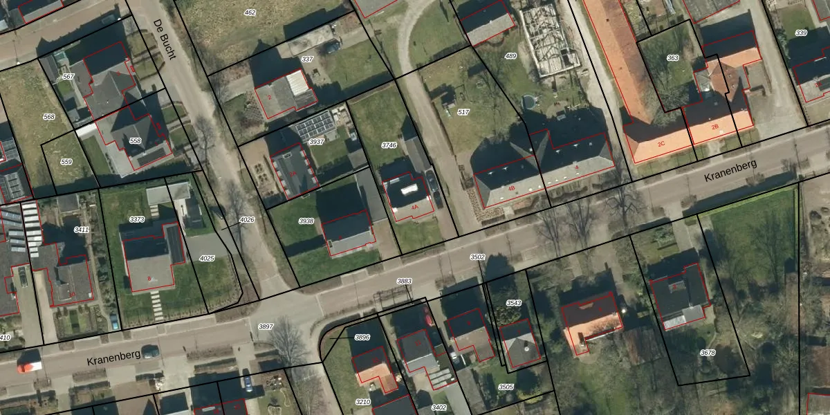 Het perceel waarop Kranenberg 4-A staat heeft een oppervlakte van 552 m². Dit is een groot perceel. De perceeloppervlakte wordt geregistreerd door het Kadaster. Gedetailleerde informatie over de maten van dit perceel kunt u vinden in het rapport Kadastrale kaart met maatvoering van Kranenberg 4-A.
