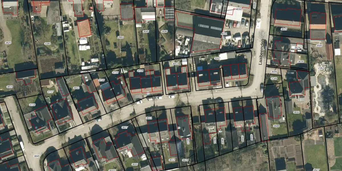 Laaibeemden 14 is gelegen op kadastraal perceel HGL04D3651. Deze kadastrale aanduiding is uniek en wordt gebruikt door het Kadaster om eigendomsrechten en andere zakelijke rechten vast te leggen. Het perceel maakt onderdeel uit van de kadastrale gemeente Hoogeloon.