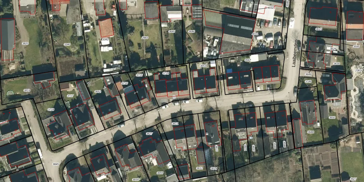 Laaibeemden 16 is gelegen op kadastraal perceel HGL04D3714. Deze kadastrale aanduiding is uniek en wordt gebruikt door het Kadaster om eigendomsrechten en andere zakelijke rechten vast te leggen. Het perceel maakt onderdeel uit van de kadastrale gemeente Hoogeloon.