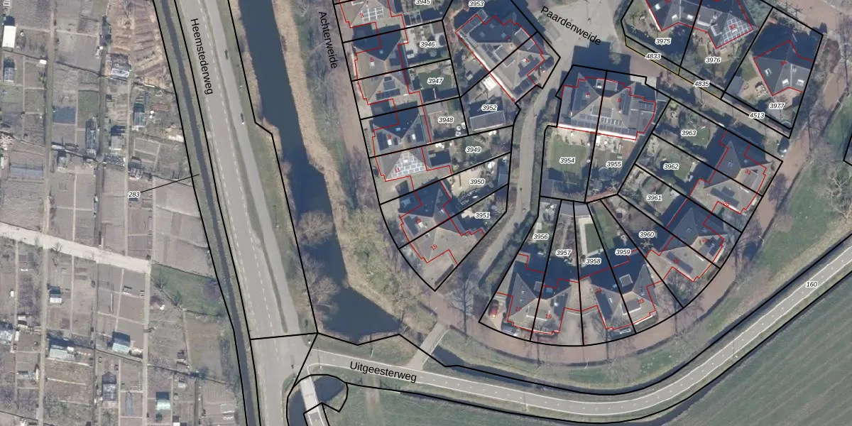 Het perceel waarop Achterweide 13 staat heeft een oppervlakte van 281 m². Dit is een middelgroot perceel. De perceeloppervlakte wordt geregistreerd door het Kadaster. Gedetailleerde informatie over de maten van dit perceel kunt u vinden in het rapport Kadastrale kaart met maatvoering van Achterweide 13.