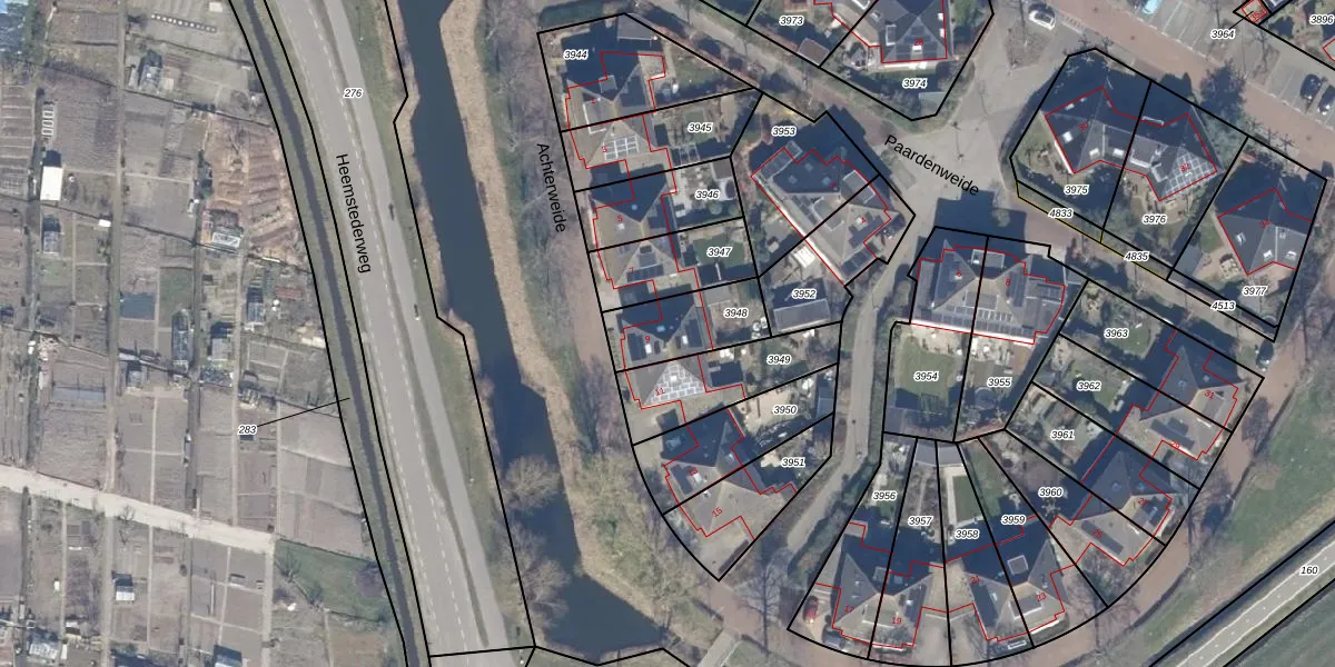 Gebruik de zoekbalk of klik op een perceel voor informatie over de adressen binnen dit perceel.