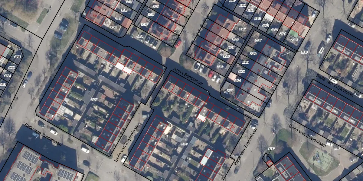 Het perceel waarop Anna Bijnsstraat 21 staat heeft een oppervlakte van 2994 m². Dit is een zeer groot perceel. De perceeloppervlakte wordt geregistreerd door het Kadaster. Gedetailleerde informatie over de maten van dit perceel kunt u vinden in het rapport Kadastrale kaart met maatvoering van Anna Bijnsstraat 21.