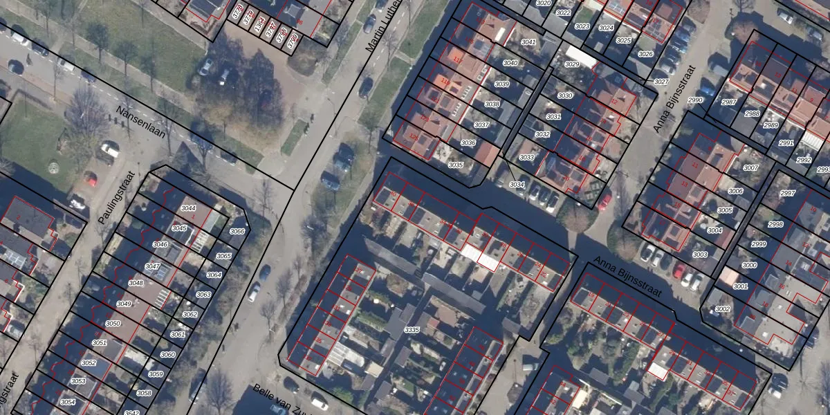 Het perceel waarop Anna Bijnsstraat 38 staat heeft een oppervlakte van 2841 m². Dit is een zeer groot perceel. De perceeloppervlakte wordt geregistreerd door het Kadaster. Gedetailleerde informatie over de maten van dit perceel kunt u vinden in het rapport Kadastrale kaart met maatvoering van Anna Bijnsstraat 38.