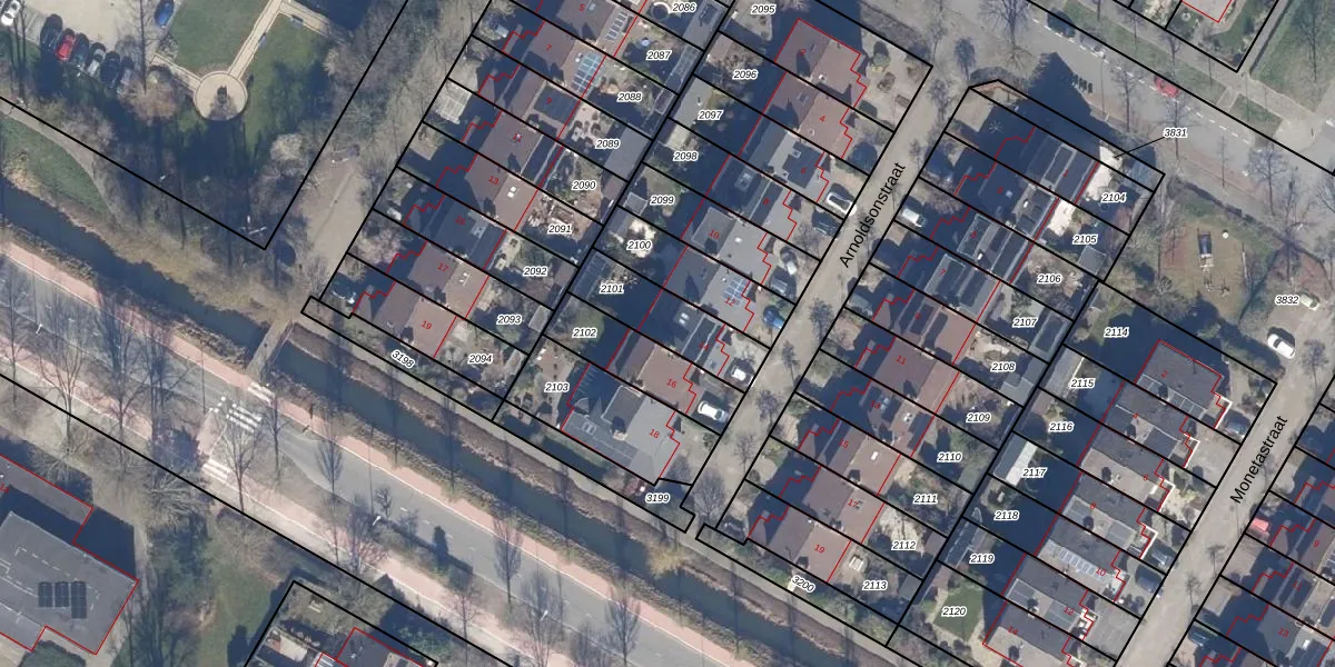 Gebruik de zoekbalk of klik op een perceel voor informatie over de adressen binnen dit perceel.
