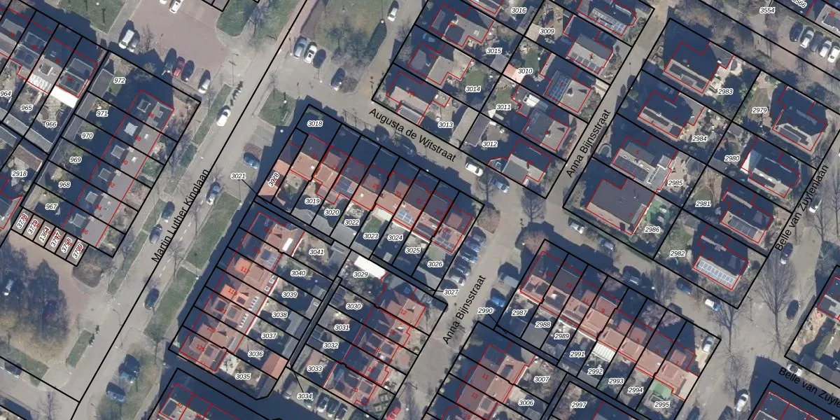 Gebruik de zoekbalk of klik op een perceel voor informatie over de adressen binnen dit perceel.