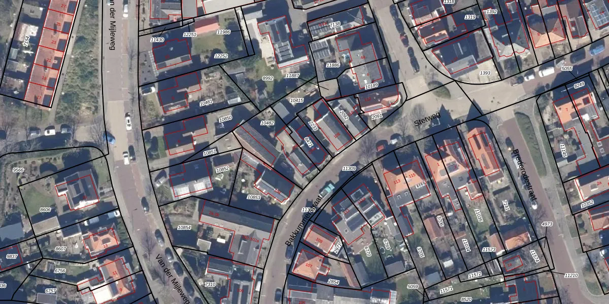 Het perceel waarop Bakkummerstraat 106-a staat heeft een oppervlakte van 115 m². Dit is een middelgroot perceel. De perceeloppervlakte wordt geregistreerd door het Kadaster. Gedetailleerde informatie over de maten van dit perceel kunt u vinden in het rapport Kadastrale kaart met maatvoering van Bakkummerstraat 106-a.